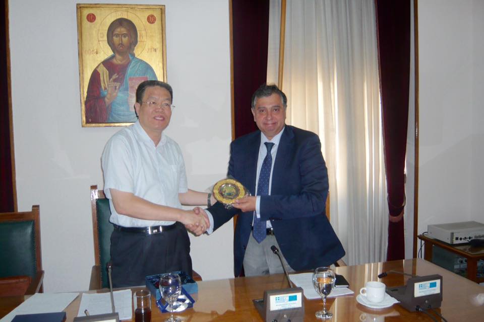 Στο πλαίσιο της στρατηγικής εταιρικής σχέσης Ελλάδας- Κίνας, με στόχο την ανάπτυξη του διμερούς εμπορίου και την προώθηση ελληνικών προϊόντων στην αγορά της Κίνας, ο Πρόεδρος κ. Βασίλης Κορκίδης και τα μέλη του Δ.Σ. του Εμπορικού και Βιομηχανικού Επιμελητηρίου Πειραιώς, κ.κ. Ν. Μανεσιώτης, Ν. Μαυρίκος, Ι. Παρασκευάκος και Δ. Λεμονάκης υποδέχθηκαν μία υψηλόβαθμη, 6μελή επιχειρηματική αποστολή από την περιοχή Τιεντζίν της Κίνας, τη Δευτέρα 25 Ιουλίου 2016, στο Μέγαρο του Ε.Β.Ε.Π.