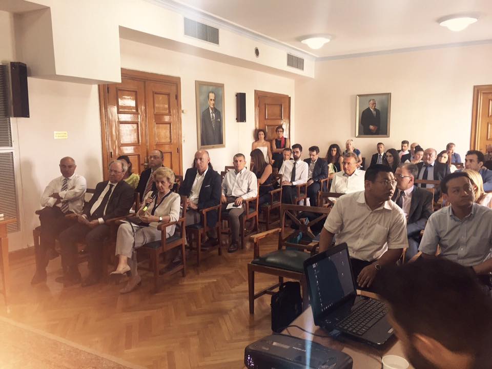 Ο Πρόεδρος του Ε.Β.Ε.Π., κ. Β. Κορκίδης, παρουσίασε το πολύπλευρο έργο και συνεισφορά του Επιμελητηρίου στην επιχειρηματική κοινότητα, την πειραϊκή οικονομία και κοινωνία, καθώς επίσης και τα βασικά στοιχεία στις εμπορικές σχέσεις Ελλάδας- Κίνας, επισημαίνοντας ότι «…το 2015, οι εισαγωγές από την Κίνα συνέχισαν την ανοδική τους πορεία (2,3%), όταν το σύνολο των εισαγωγών της Ελλάδας παρουσίαζε μείωση, κατά 9,8%, εξαιτίας και της επιβολής ελέγχου στην κίνηση κεφαλαίων. Το γεγονός αυτό, υποδεικνύει τη σημασία των κινεζικών εισαγωγών για την ελληνική οικονομία, σε περίοδο οικονομικής αβεβαιότητας και αστάθειας. Οι ελληνικές εξαγωγές προς την Κίνα, όπως και προς όλες τις άλλες χώρες, παρουσιάζουν κόπωση, αφού από το 2013 κινούνται πτωτικά. Αυτή η εξέλιξη υπογραμμίζει την αδυναμία της ελληνικής οικονομίας να αξιοποιήσει όλα τα πλεονεκτήματά της και να γίνει περισσότερο εξωστρεφής…».